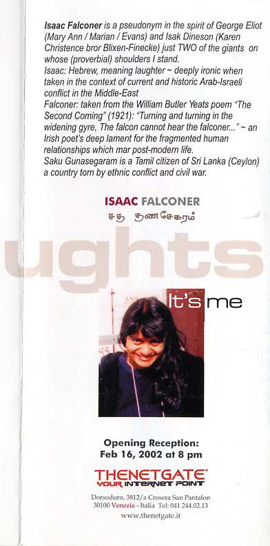 All paintings © 2002 by Falconer/Gunasegaram. This brochure design © 2002 by Roberto Stagnetti.